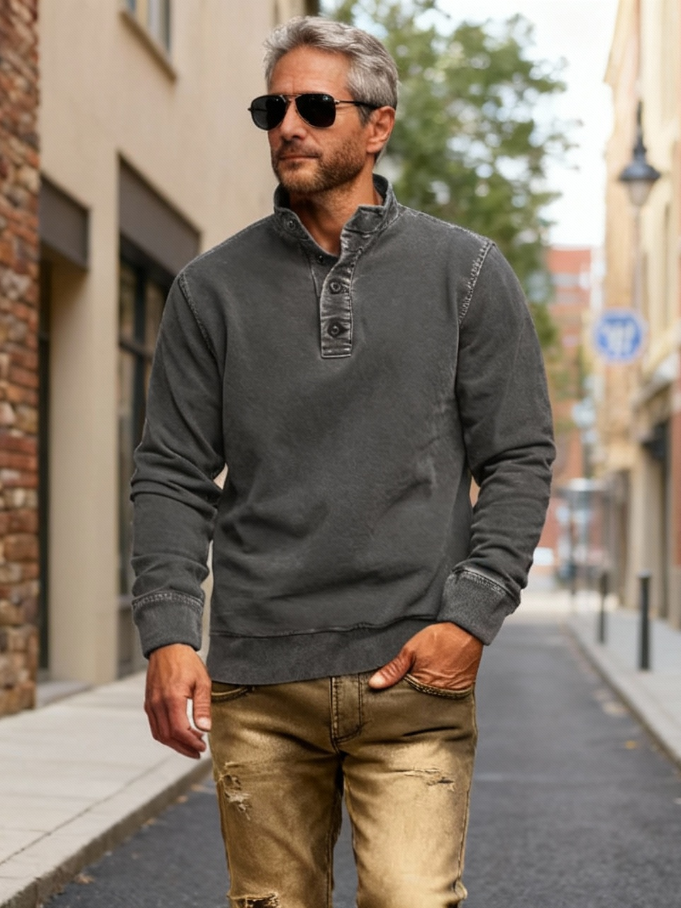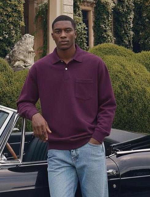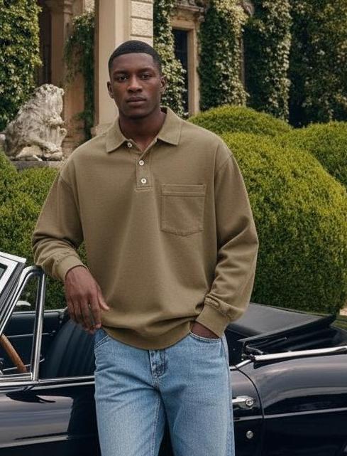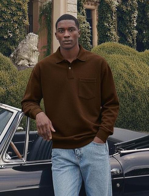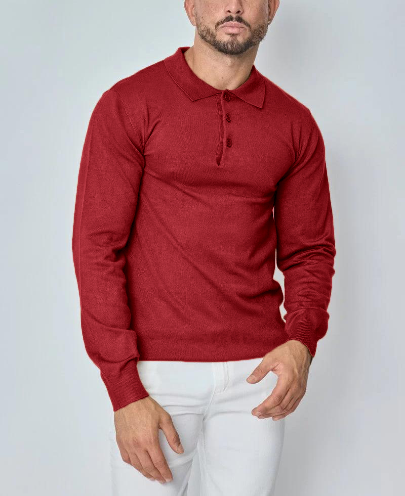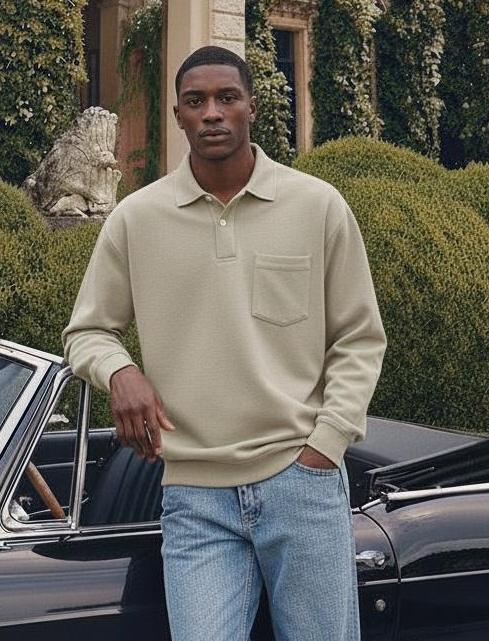 Men's Solid Color Round Neck Pullover Lapel Sweater 19352883X