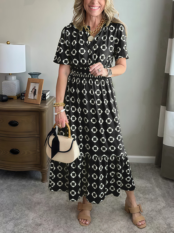 CLEARANCE🔥 Summer Elastic Waistband Printed Dress