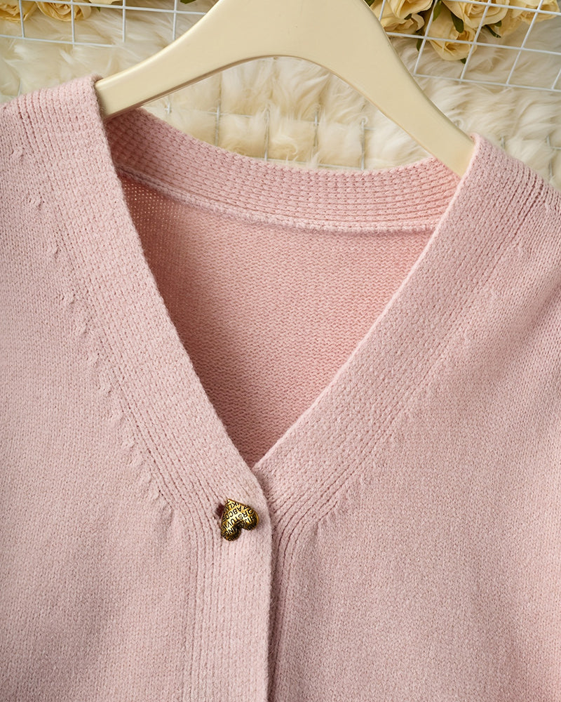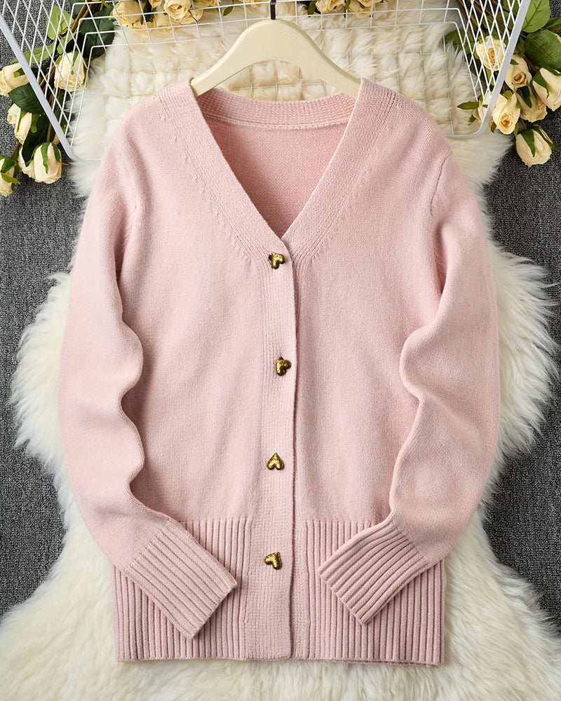 Cozy Heart Shaped Button Knit Cardigan