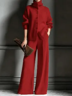 Women's Cozy Cardigan Sweater and Pants Two-Piece Set