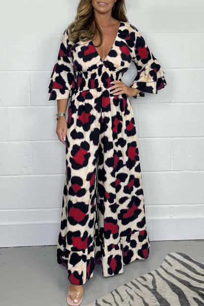 Hot Sale🔥 Women's Leopard Print Elastic Waist Casual Wide Leg Jumpsuit